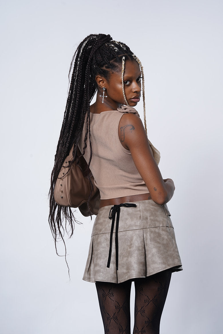 Coffee Spill Spike Bag go against the grain. This exclusive handbag has an vintage curtain print construction, Matt silver logo charm, spiked trim, zipper closures, and a pocket on inside.