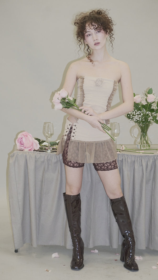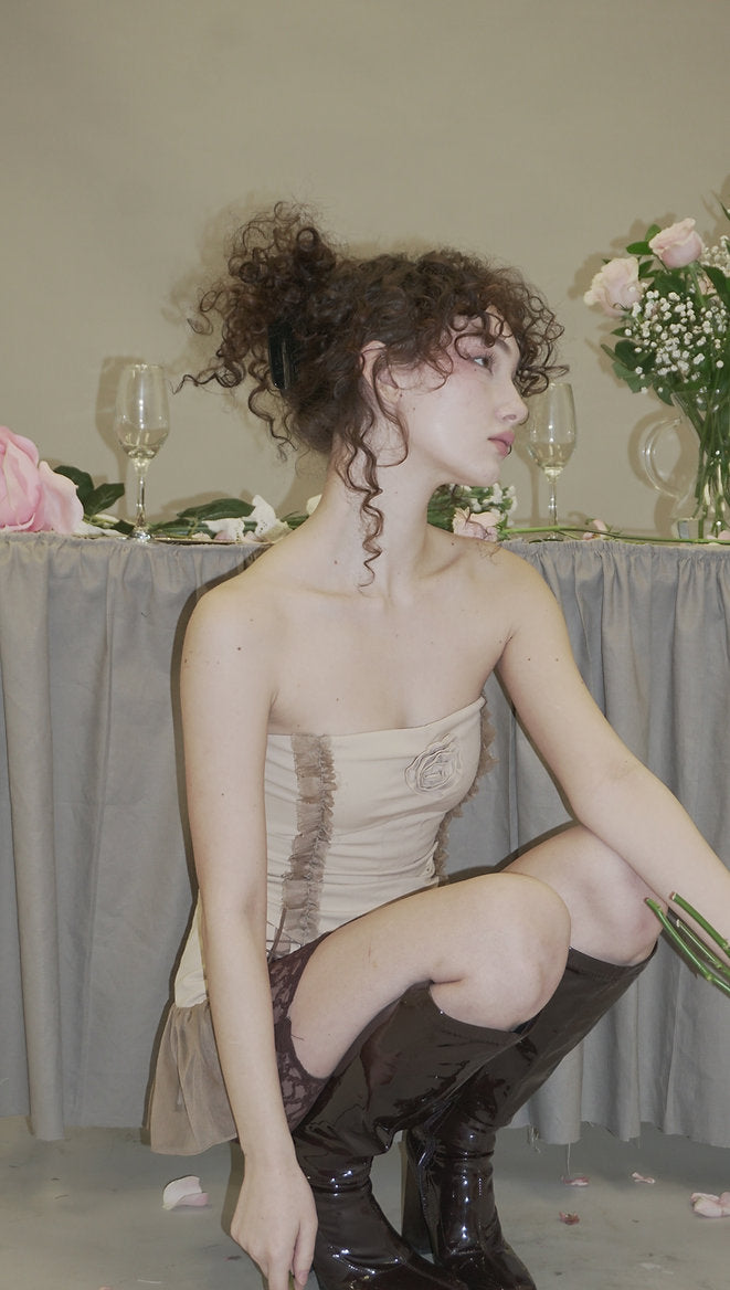 This adorable top features delicate rose detailing and a feminine ruffle detail, perfect for adding a touch of romance to any outfit.