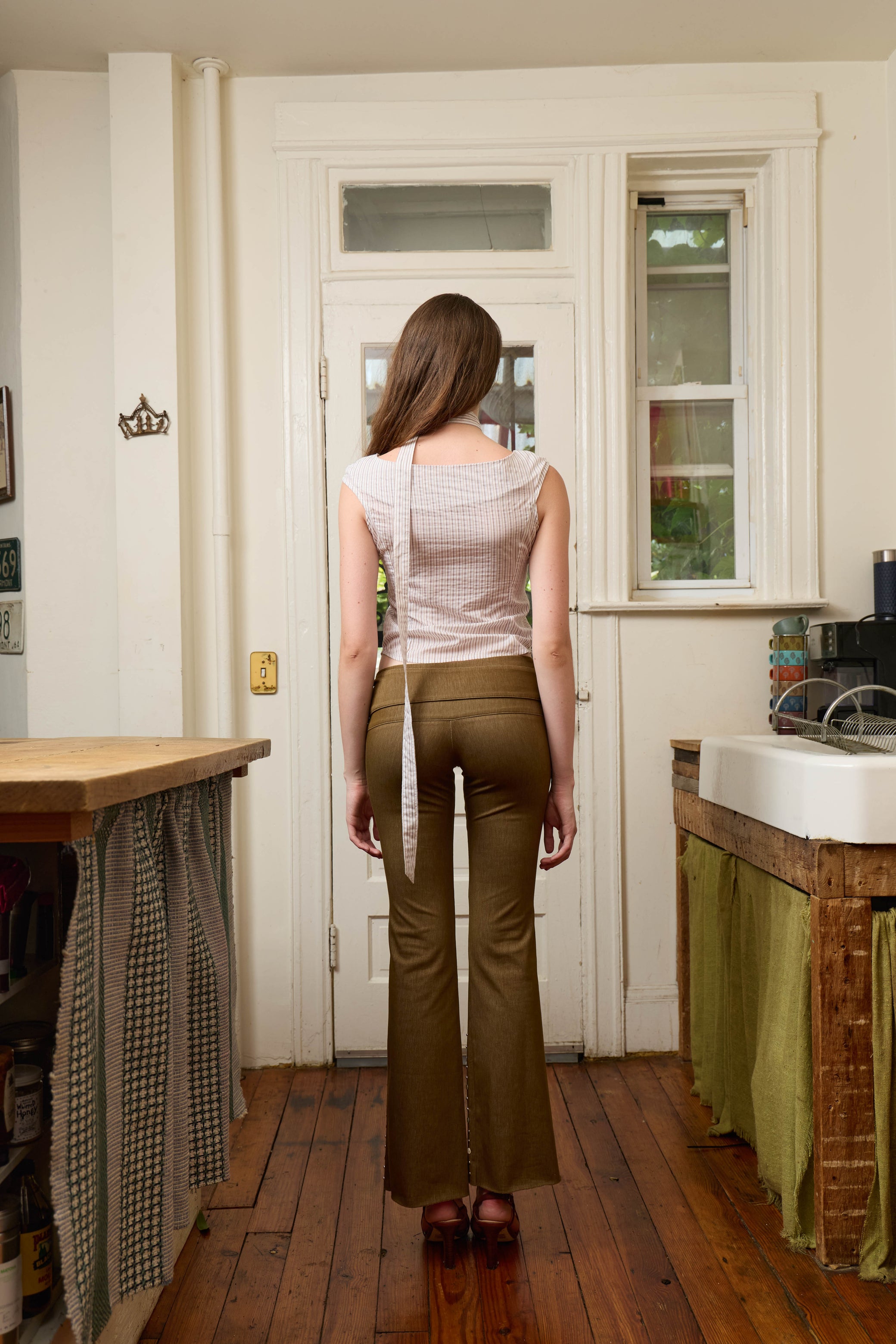 Latte Stripe Tie Shirt