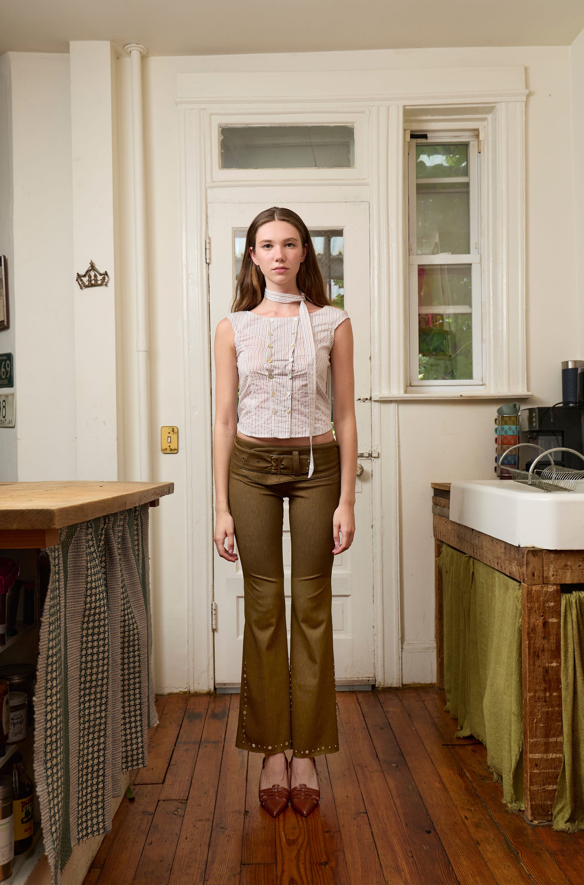Meet your new go-to layering essential! This latte stripe tie shirt combines soft cotton fabric with a playful front opening detail that lets you style it your way. Tie it up, leave it loose, or drape it over a tank—the possibilities are endless. Plus, it comes with a matching scarf to double down on coordinated style. Whether you're dressing up a casual outfit or adding dimension to your basics, this versatile piece is ready for whatever your day throws at you.