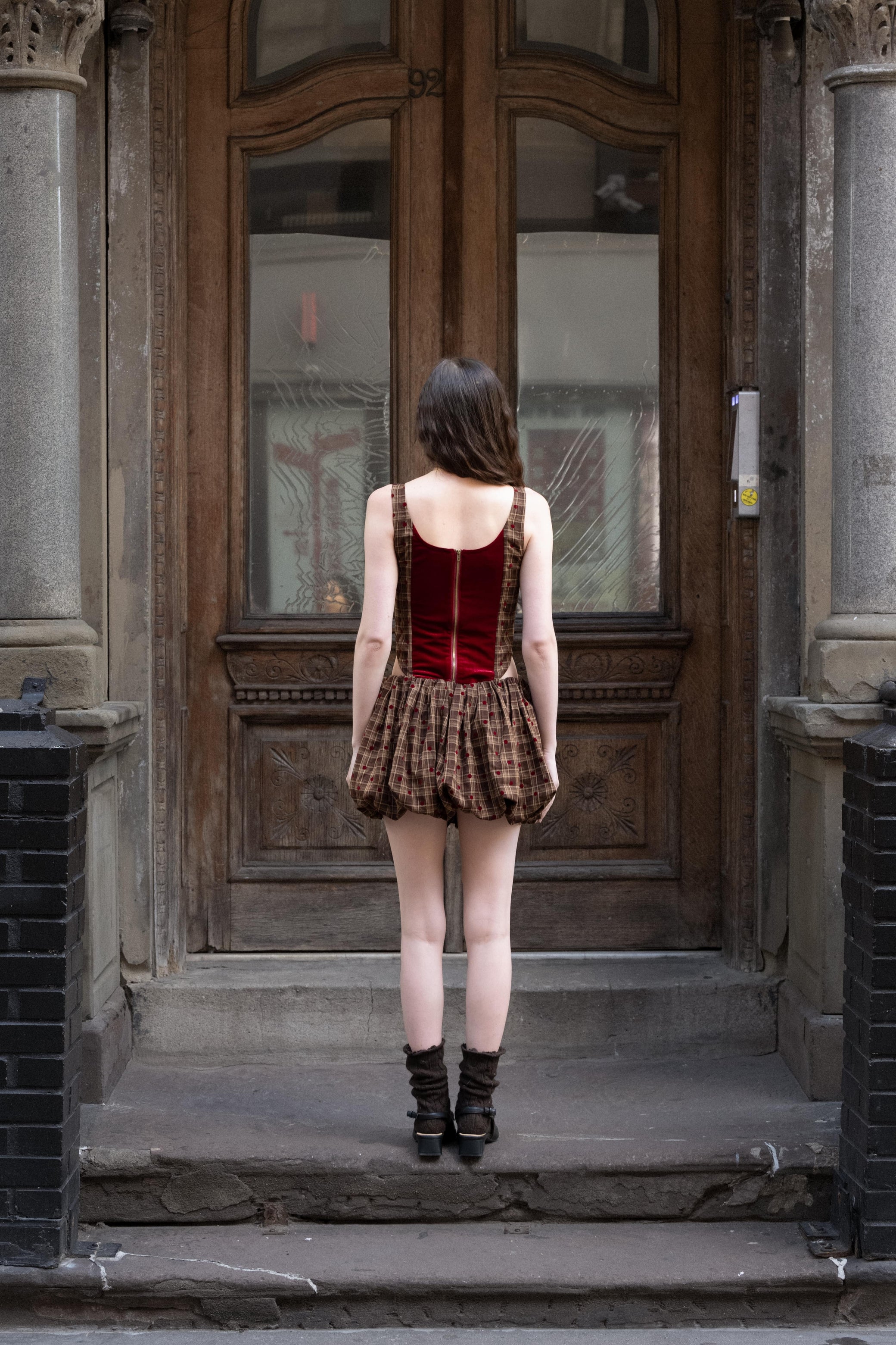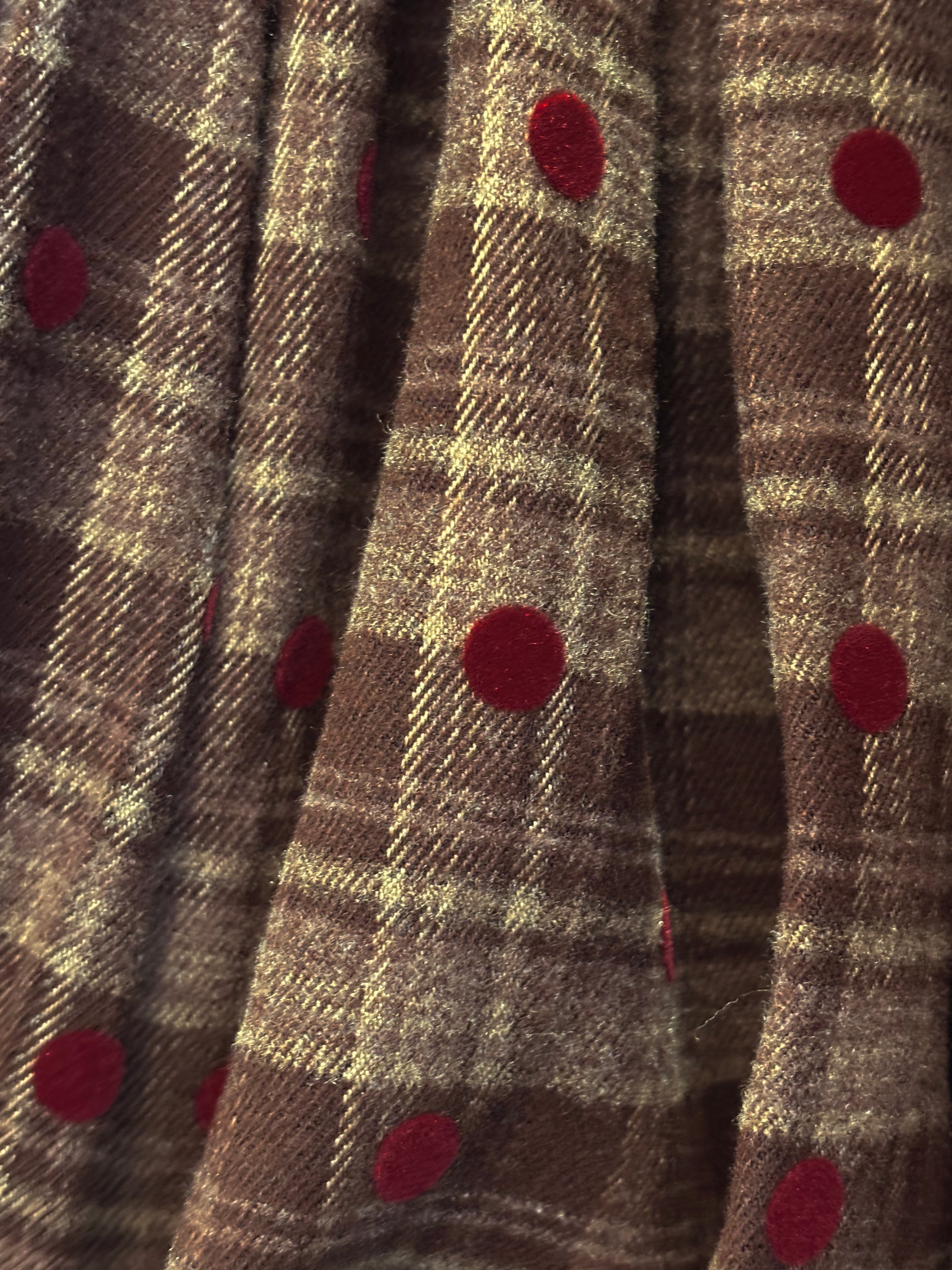 Rock a fun twist on classic style with this muffin skort! Combining crisp plaid with luxe velvet polka dots, it's a textural mashup that stands out. The playful pattern mix brings whimsy to your everyday look, while the skort silhouette keeps things comfy and versatile. Whether you're baking up something sweet or just living your best life, this piece adds a dash of personality to any outfit.